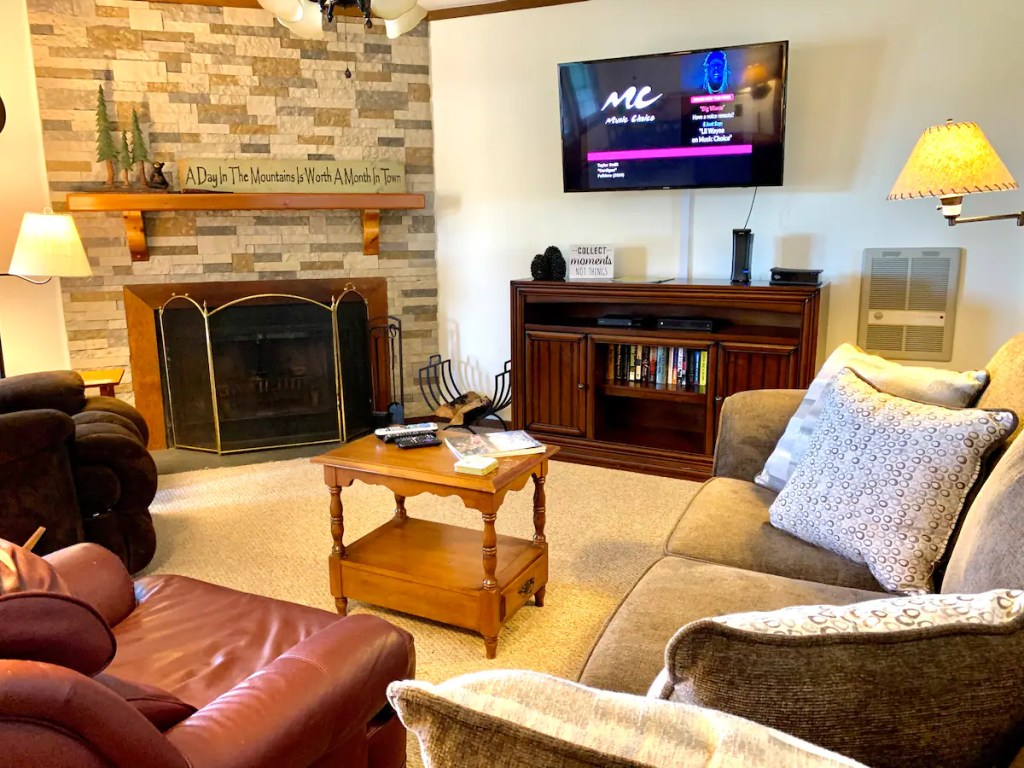 During your stay at Pinnacle you will have full access to the resort’s amenities including our year round indoor heated pool, hot tub, saunas, small upstairs workout area, pool table and ping pong. Head outside and play tennis or pickleball on our outdoor courts. Let the little ones run around the playground surrounded by mountains or grab putters from the office to play a little mini golf. There is also a convenient EV charging less than a minute away.